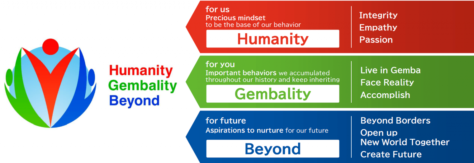 Living and prospering together with people, society, and the planet, we aim to be a value-generating corporation that contributes to the creation of prosperous societies.