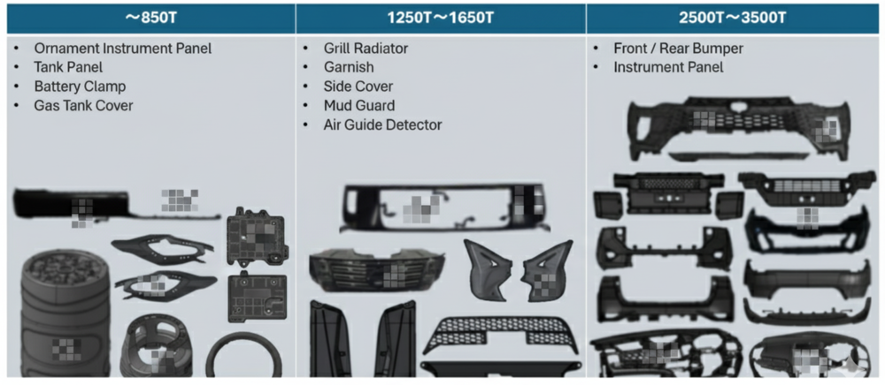 แม่พิมพ์ฉีด: รองรับขนาดเครื่องจักรตั้งแต่ 650 ตัน ถึง 3500 ตัน